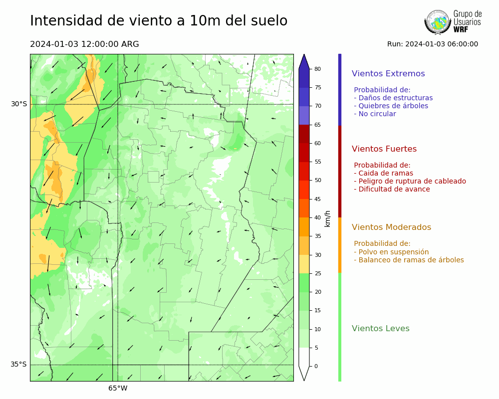 • Intensidad máxima: 14.62 km/h (03/01/2024 16hs.)