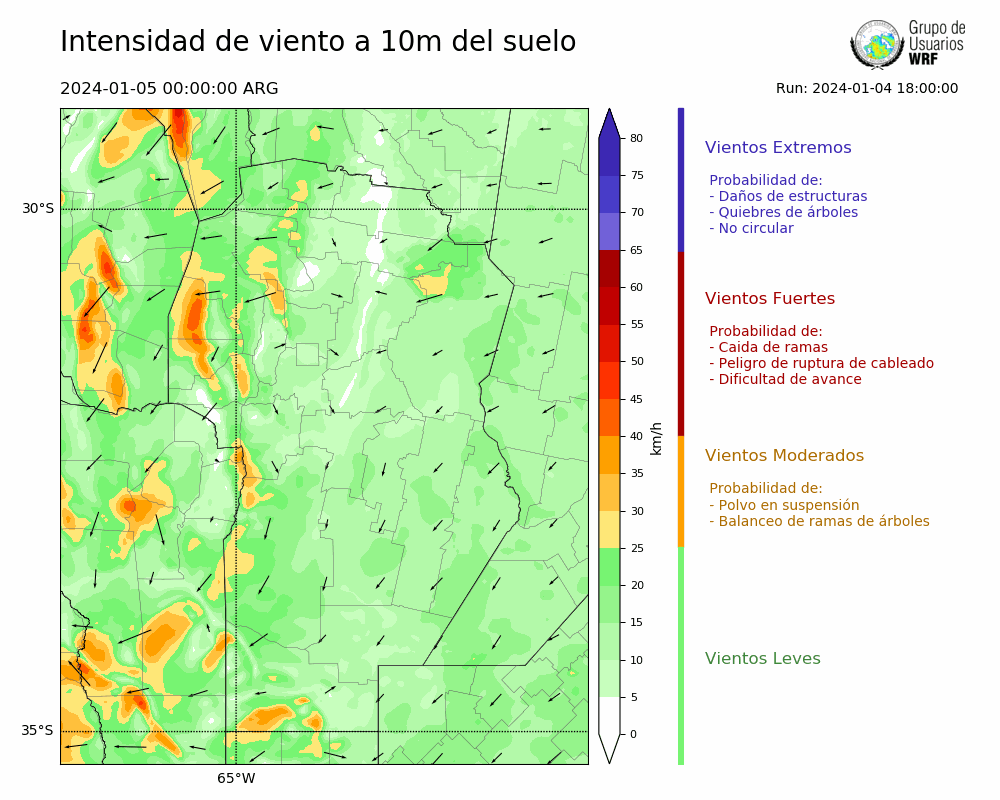 • Intensidad máxima: 20.29 km/h (05/01/2024 11hs.)