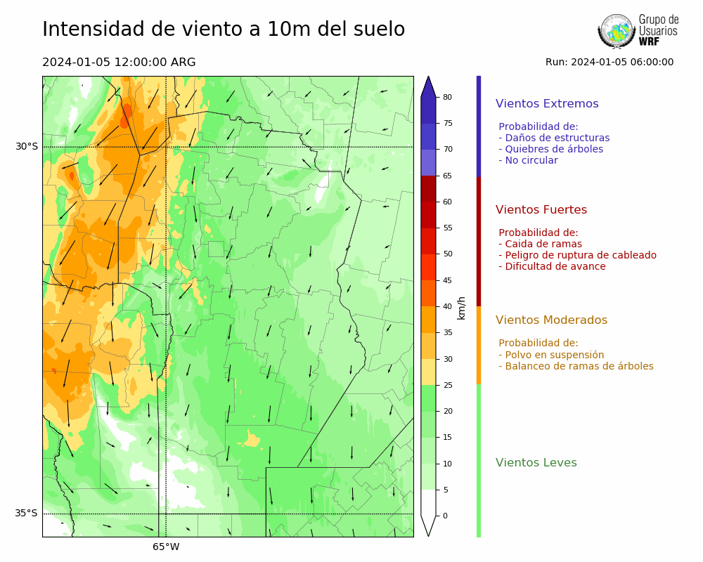 • Intensidad máxima: 7.66 km/h (06/01/2024 05hs.)