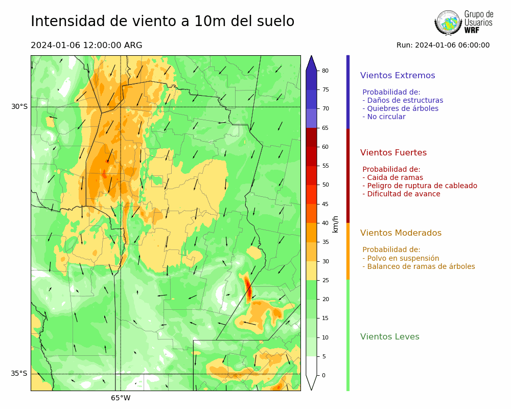 • Intensidad máxima: 14.25 km/h (06/01/2024 18hs.)