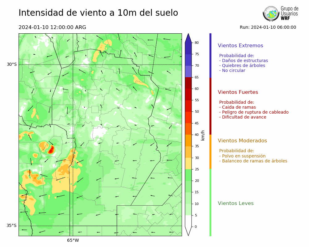 • Intensidad máxima: 9.31 km/h (10/01/2024 14hs.)