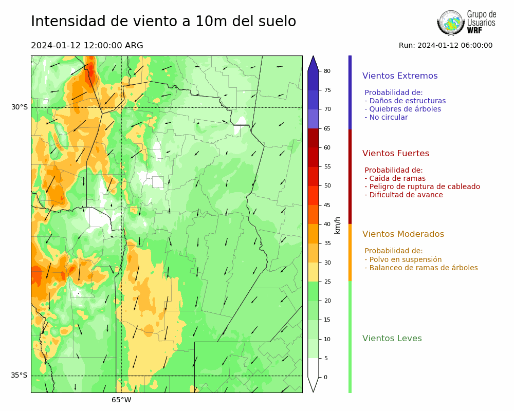 • Intensidad máxima: 18.11 km/h (12/01/2024 18hs.)
