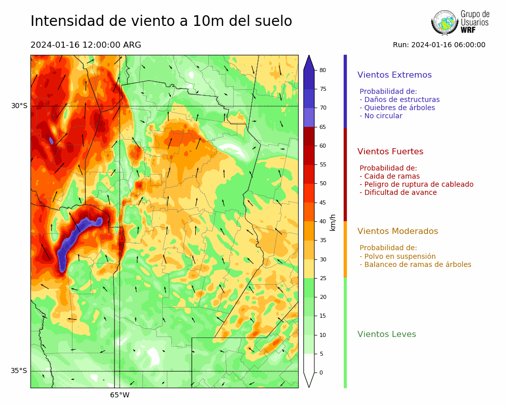 • Intensidad máxima: 32.64 km/h (16/01/2024 13hs.)