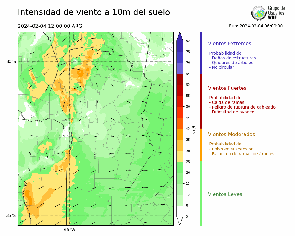 • Intensidad máxima: 13.74 km/h (04/02/2024 18hs.)