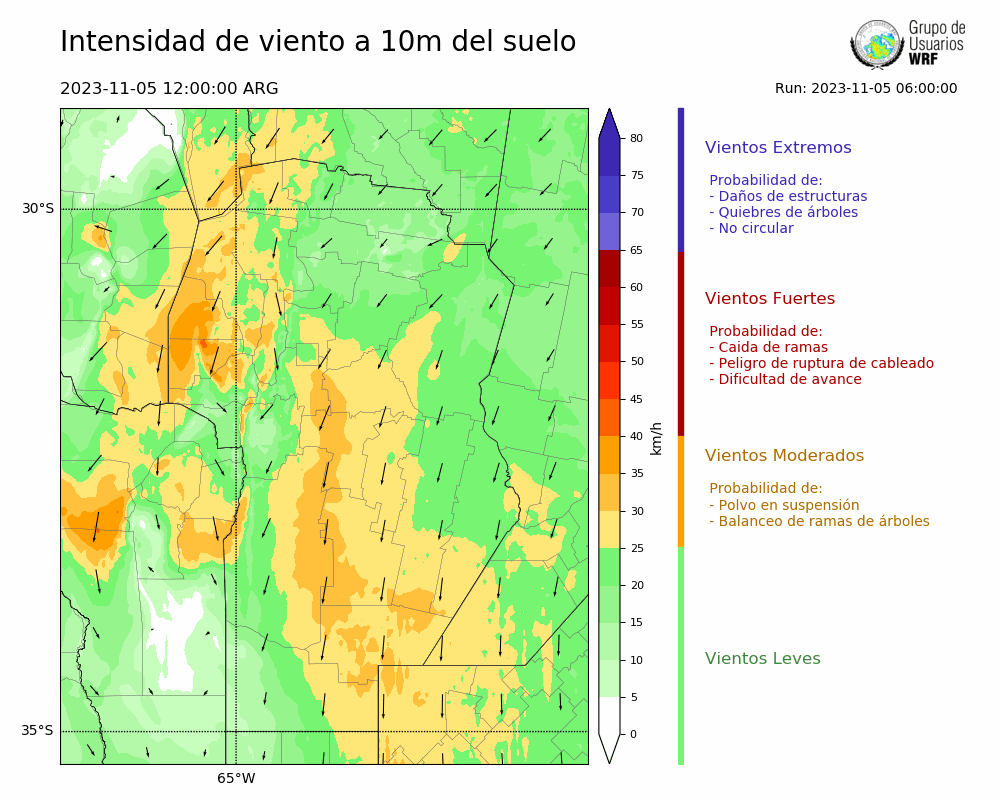 • Intensidad máxima: 25.26 km/h (05/11/2023 18hs.)