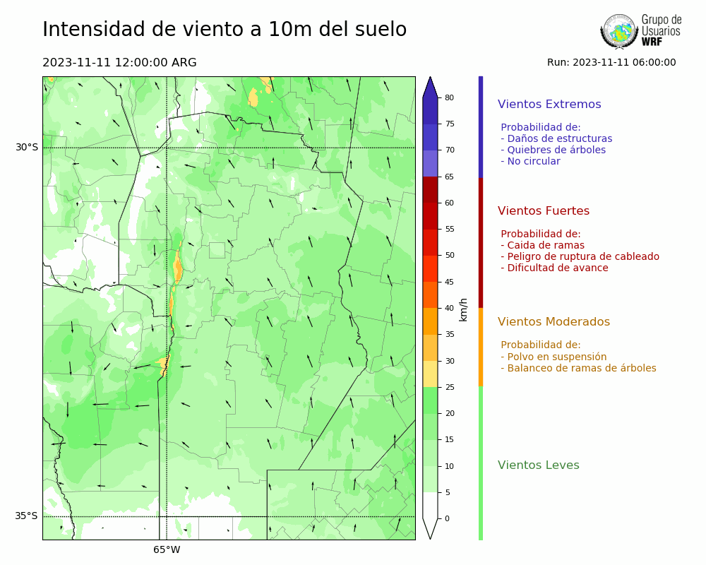 • Intensidad máxima: 9.55 km/h (11/11/2023 20hs.)