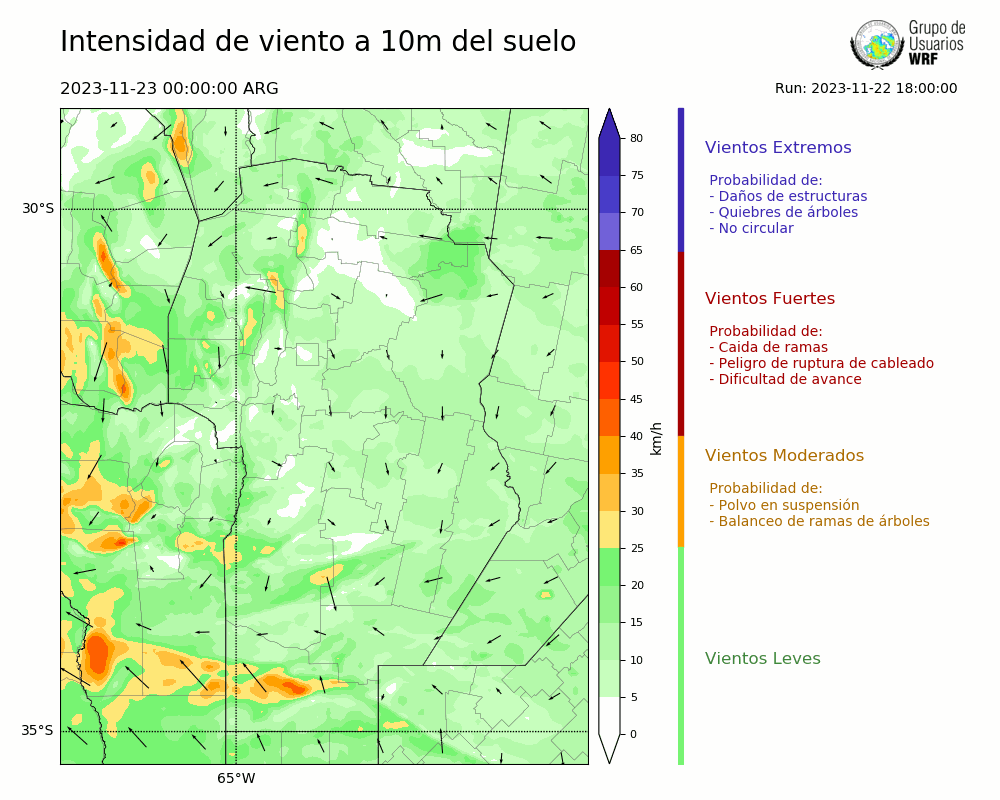 • Intensidad máxima: 8.58 km/h (24/11/2023 03hs.)