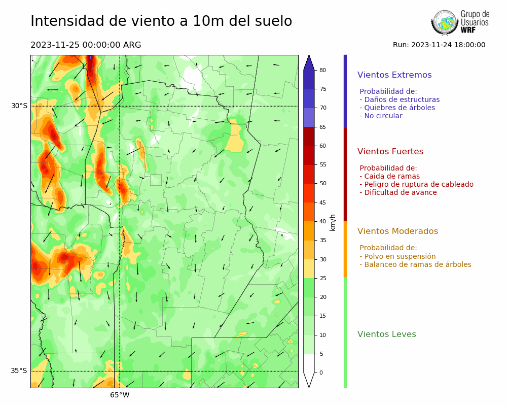• Intensidad máxima: 9.17 km/h (25/11/2023 01hs.)