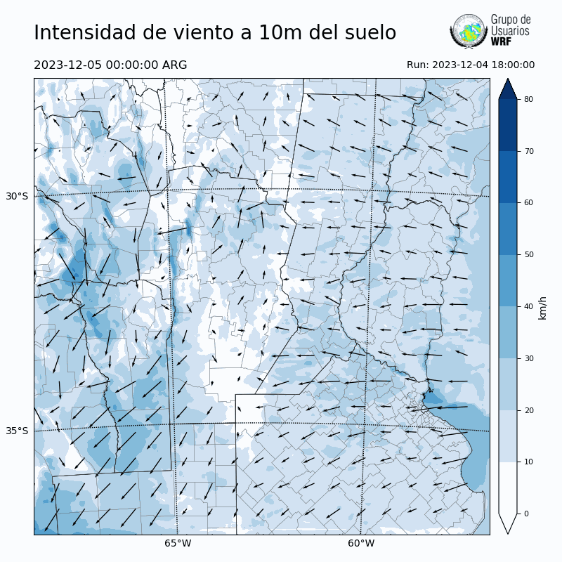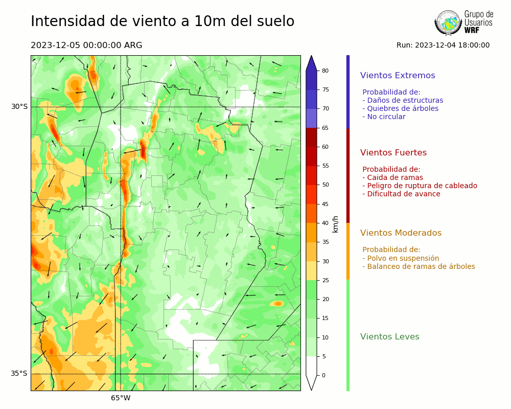 • Intensidad máxima: 6.40 km/h (06/12/2023 22hs.)