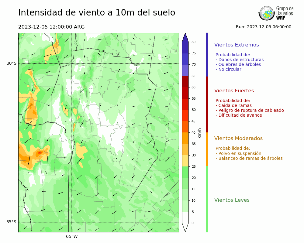 • Intensidad máxima: 14.23 km/h (05/12/2023 17hs.)