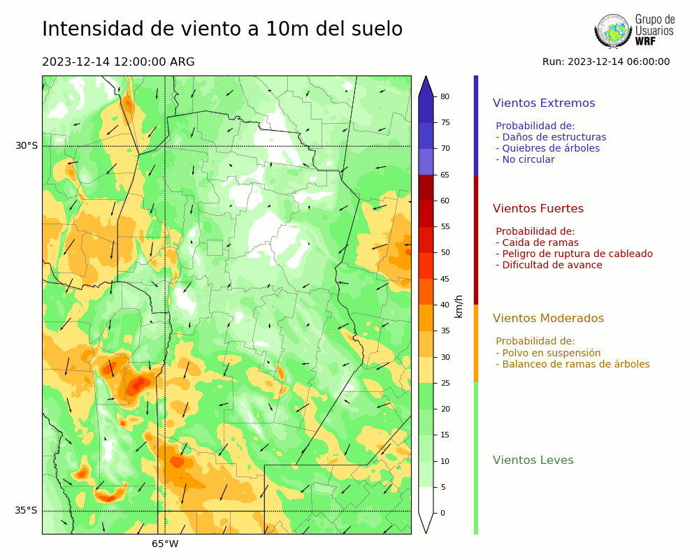 • Intensidad máxima: 16.50 km/h (14/12/2023 14hs.)