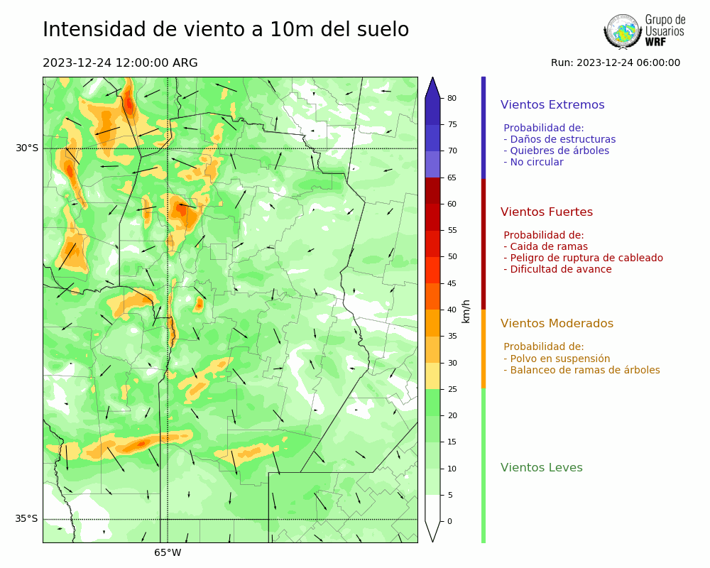 • Intensidad máxima: 8.10 km/h (24/12/2023 22hs.)