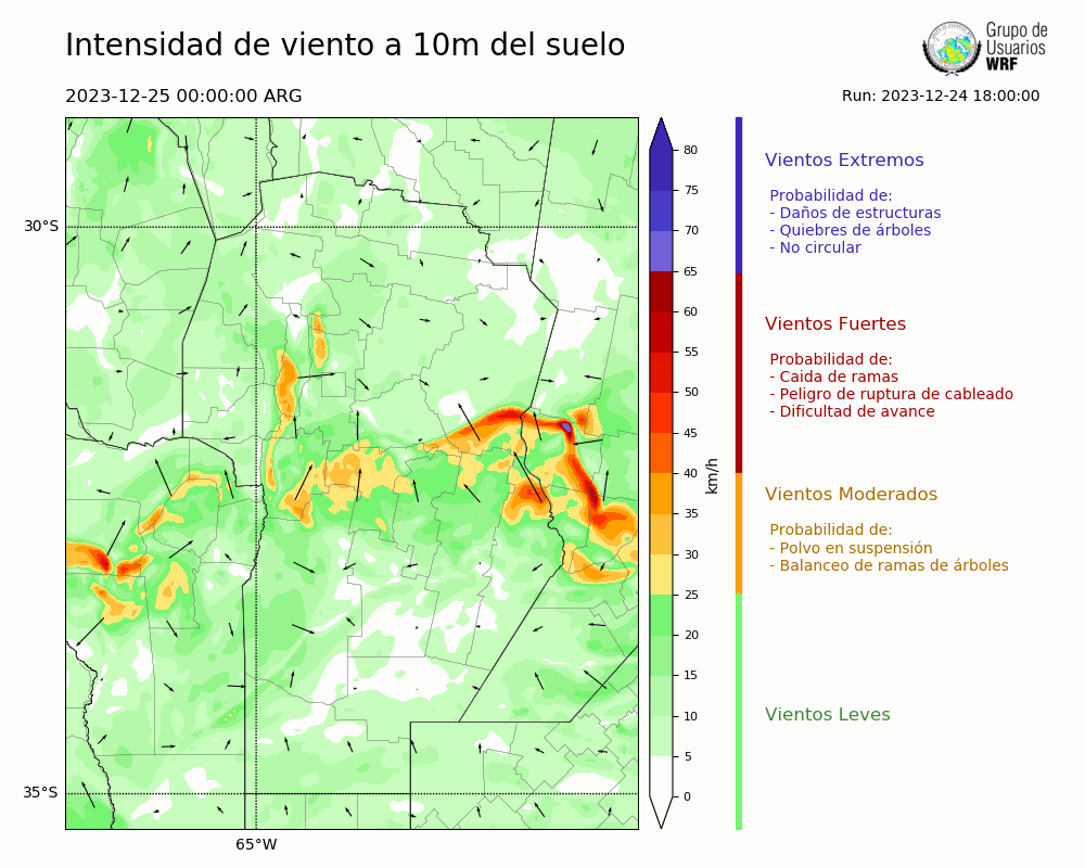 • Intensidad máxima: 23.73 km/h (25/12/2023 11hs.)