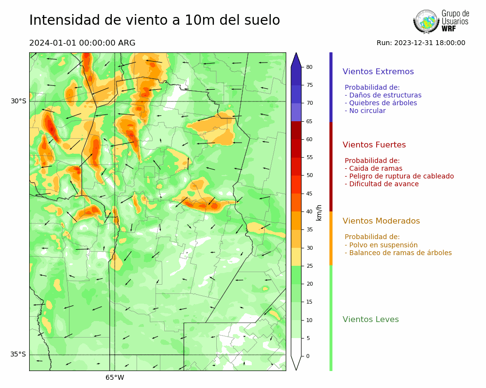• Intensidad máxima: 16.69 km/h (01/01/2024 11hs.)