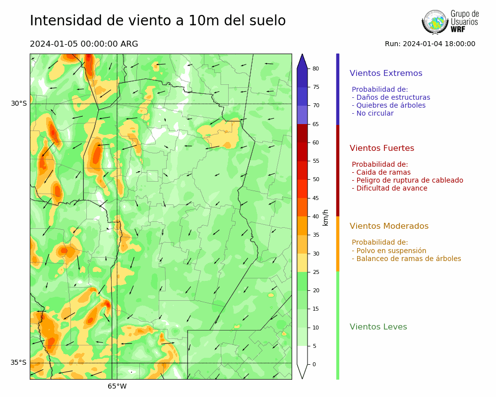 • Intensidad máxima: 7.79 km/h (05/01/2024 07hs.)
