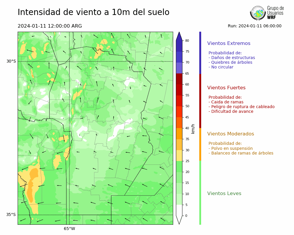 • Intensidad máxima: 18.51 km/h (11/01/2024 14hs.)