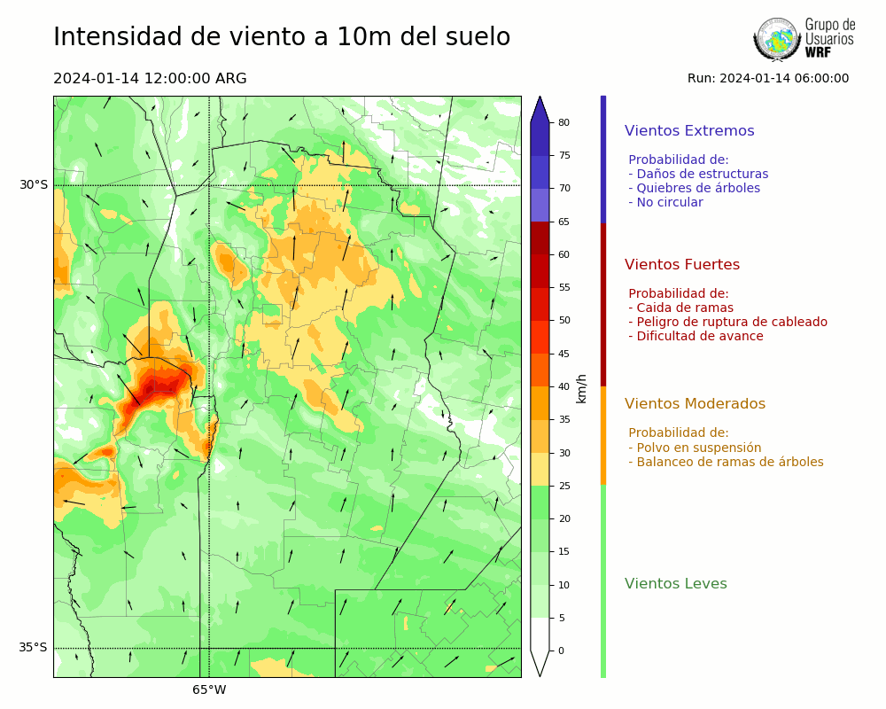 • Intensidad máxima: 13.25 km/h (15/01/2024 22hs.)