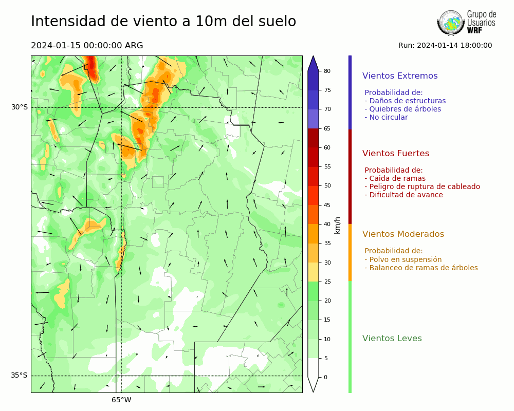 • Intensidad máxima: 10.72 km/h (15/01/2024 03hs.)
