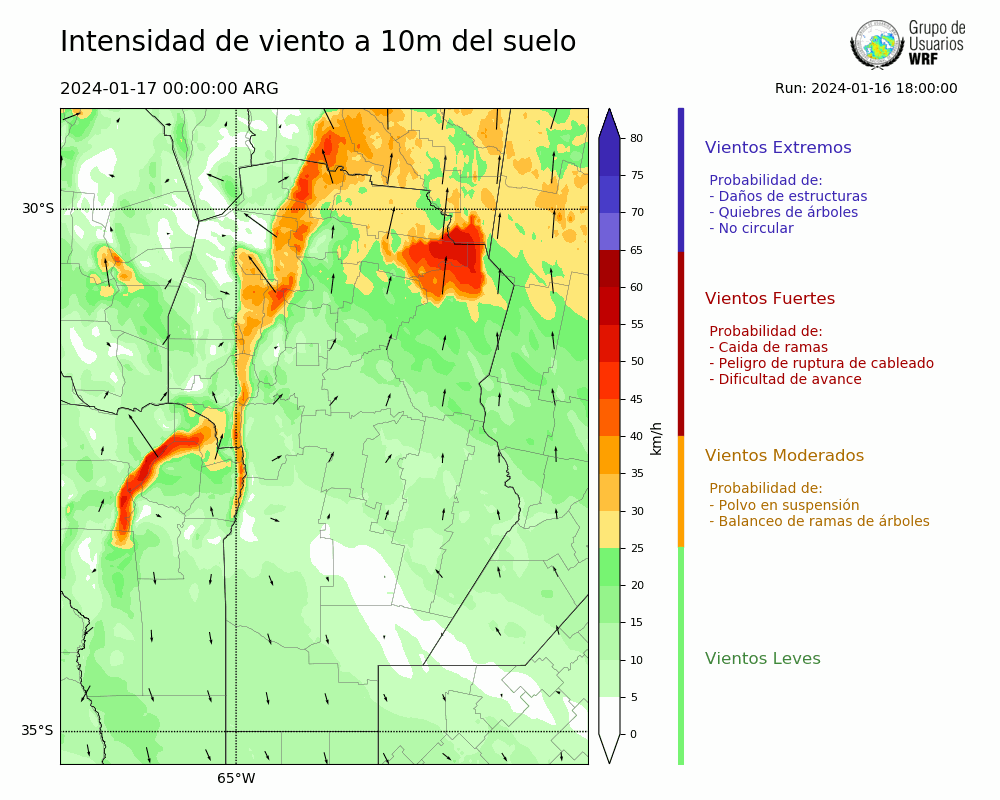 • Intensidad máxima: 6.56 km/h (18/01/2024 04hs.)