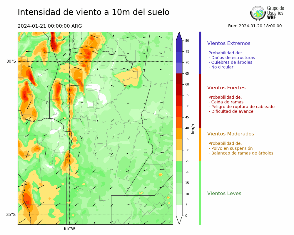 • Intensidad máxima: 9.07 km/h (21/01/2024 04hs.)
