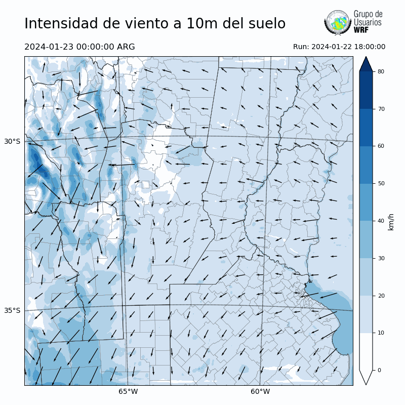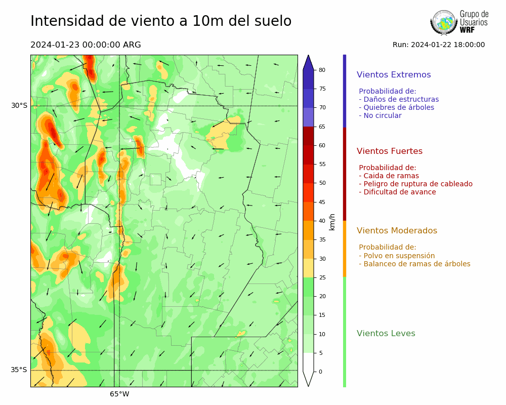 • Intensidad máxima: 12.70 km/h (23/01/2024 11hs.)