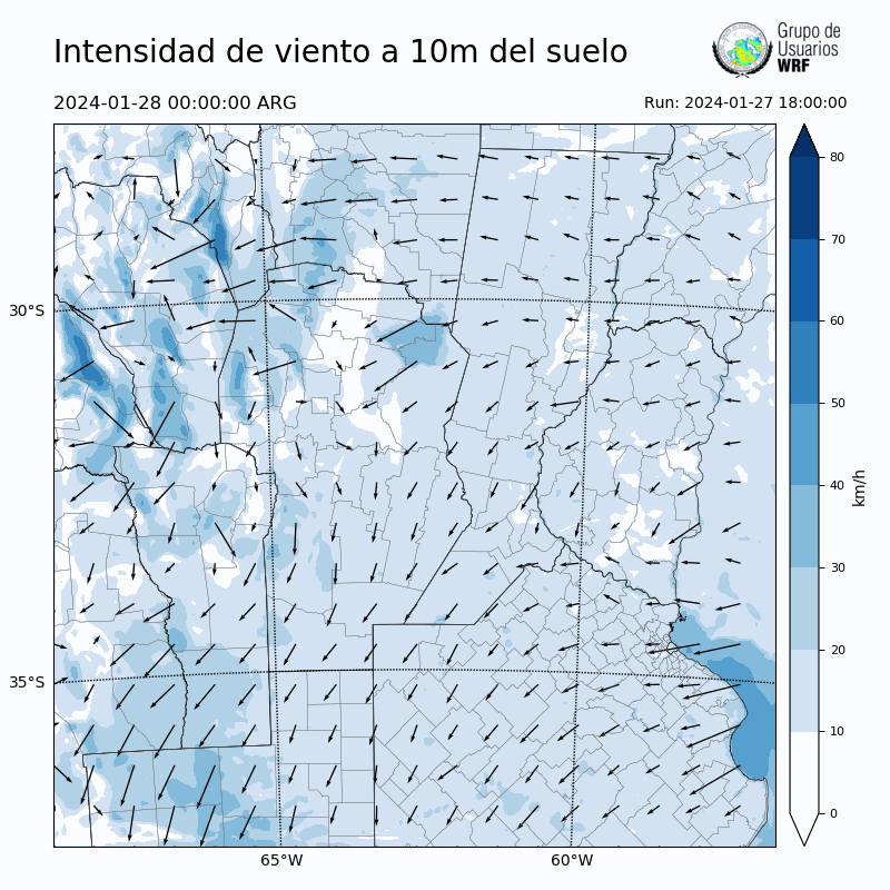 • Intensidad máxima: 10.52 km/h (30/01/2024 07hs.)