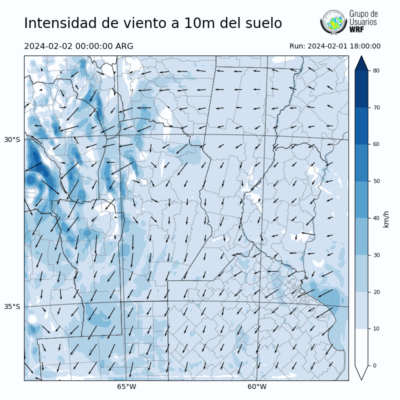 • Intensidad máxima: 10.45 km/h (02/02/2024 00hs.)