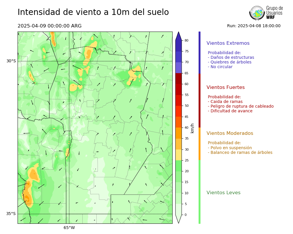 • Intensidad máxima: 9.86 km/h (09/04/2025 00hs.)
