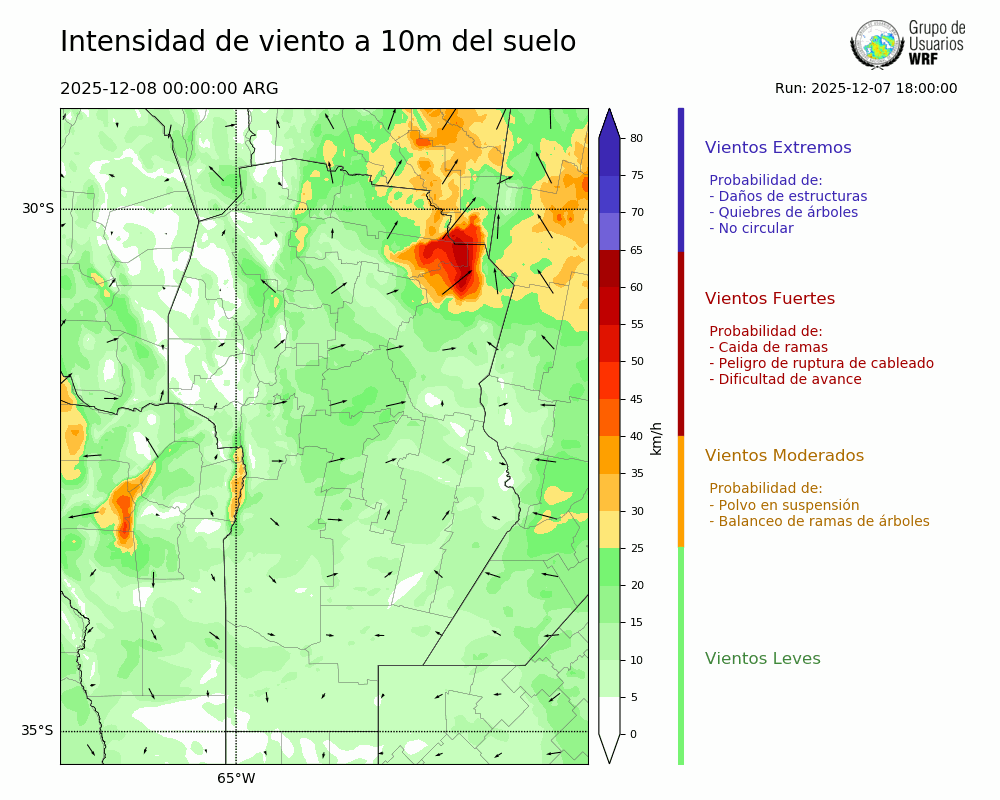 • Intensidad máxima: 8.29 km/h (08/12/2025 03hs.)