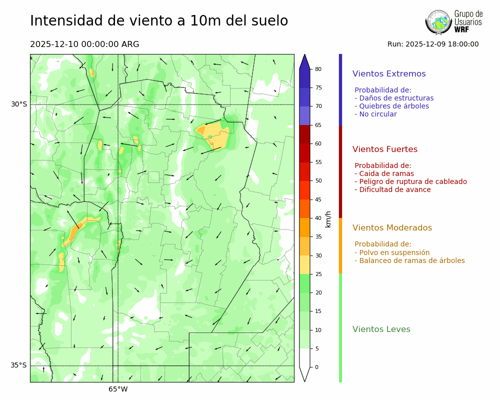 • Intensidad máxima: 16.35 km/h (10/12/2025 08hs.)