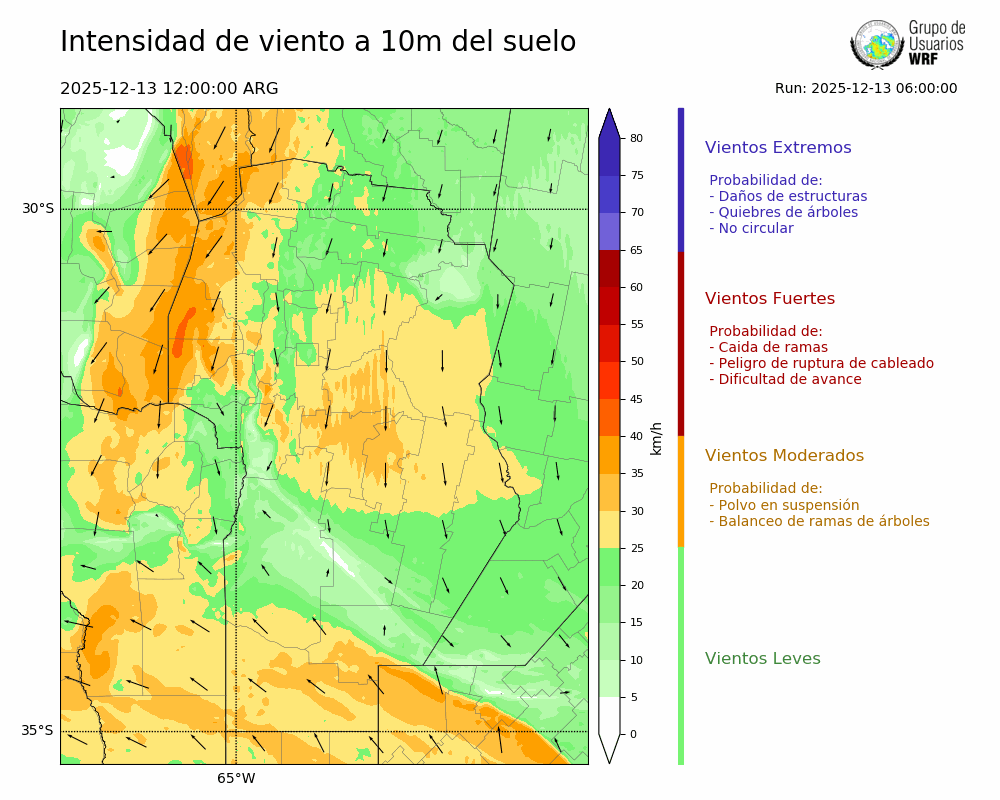 • Intensidad máxima: 21.87 km/h (13/12/2025 16hs.)