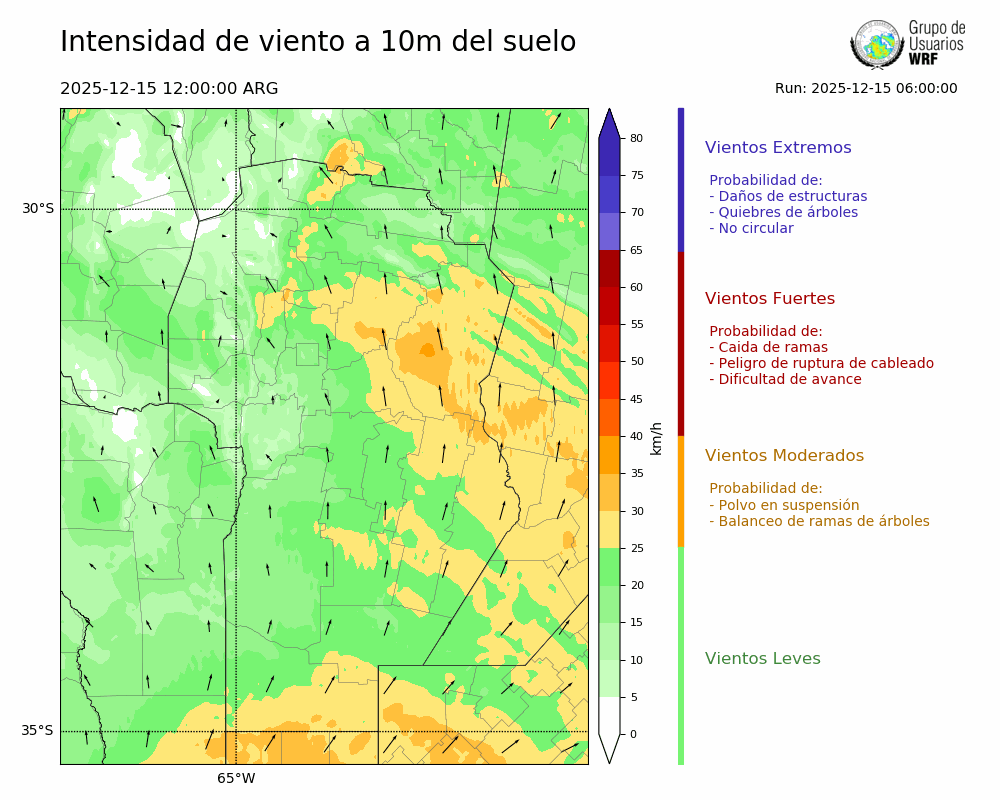 • Intensidad máxima: 11.97 km/h (16/12/2025 22hs.)