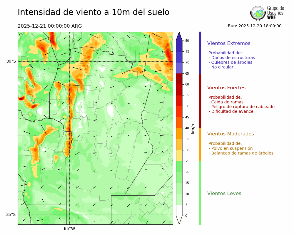 • Intensidad máxima: 20.54 km/h (21/12/2025 07hs.)