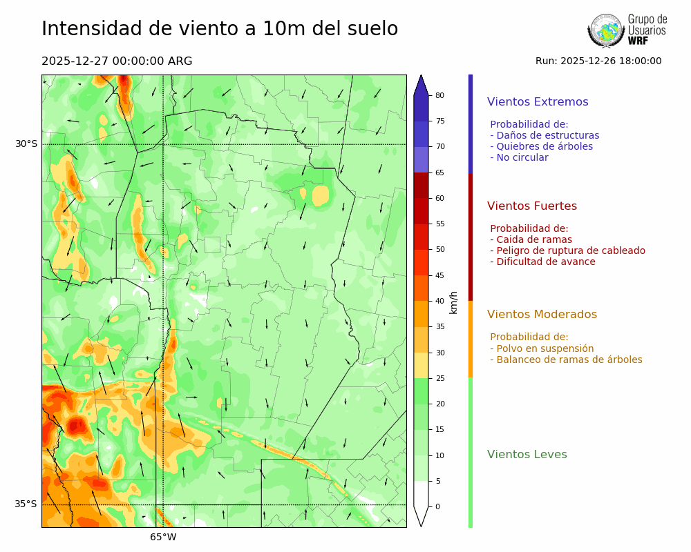 • Intensidad máxima: 10.82 km/h (27/12/2025 00hs.)