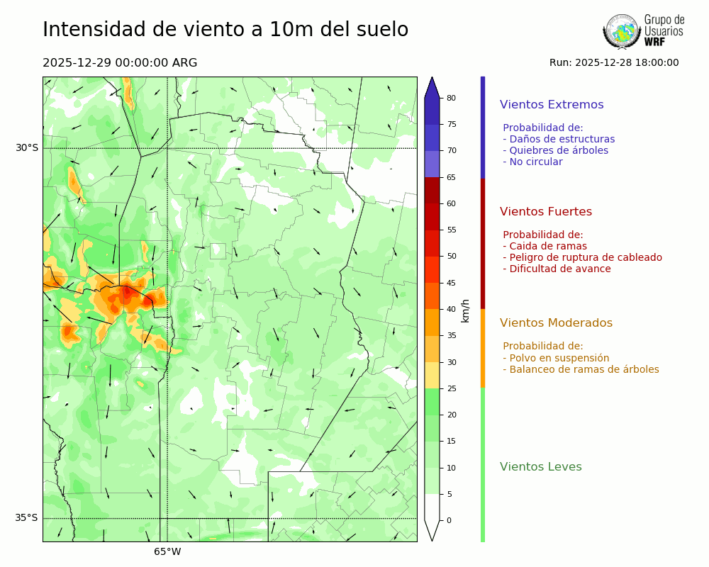 • Intensidad máxima: 8.98 km/h (29/12/2025 06hs.)