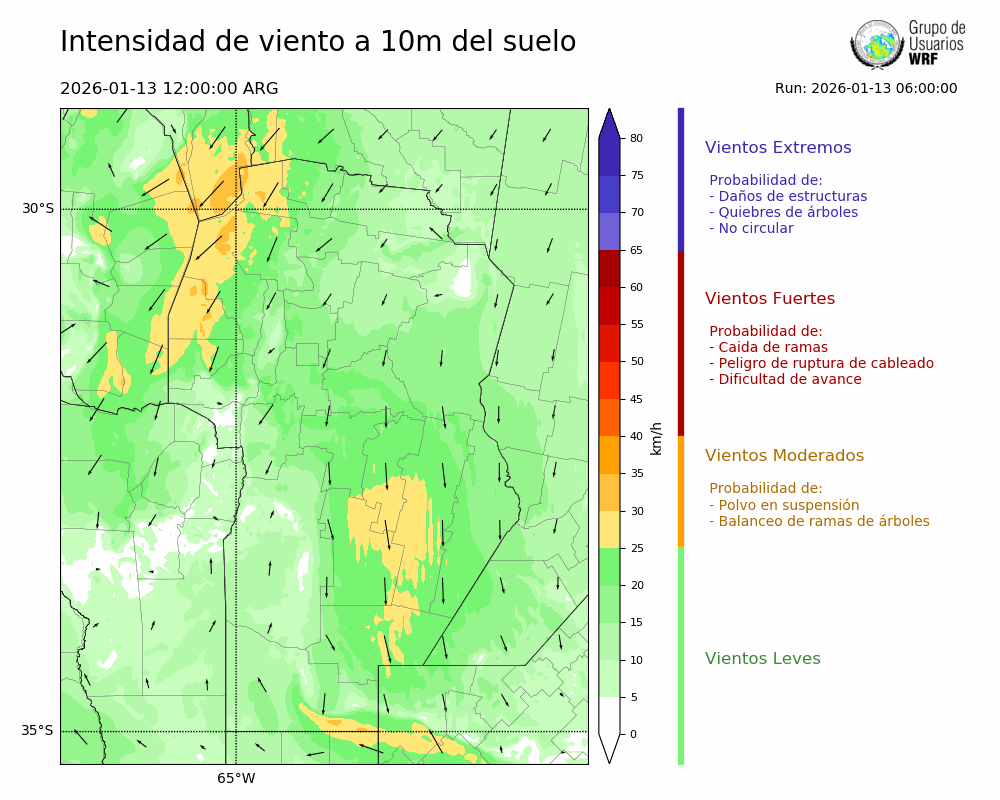 • Intensidad máxima: 20.17 km/h (13/01/2026 17hs.)