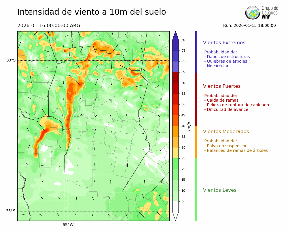 • Intensidad máxima: 21.10 km/h (16/01/2026 11hs.)