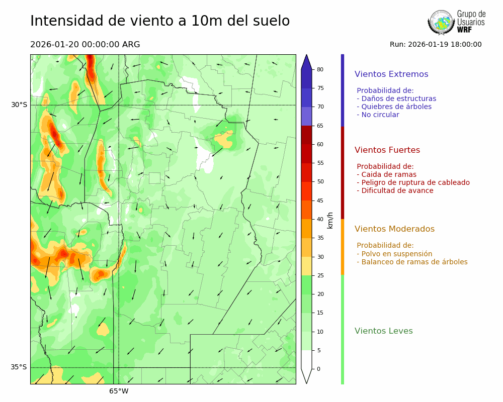 • Intensidad máxima: 14.37 km/h (20/01/2026 09hs.)