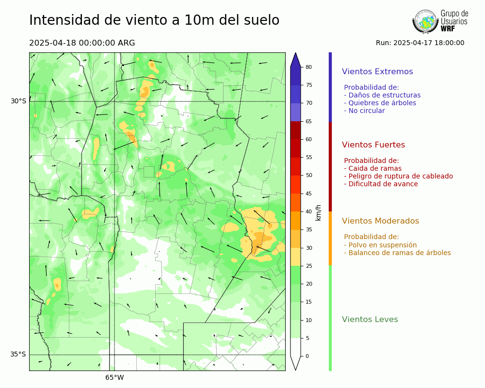 • Intensidad máxima: 14.76 km/h (18/04/2025 11hs.)