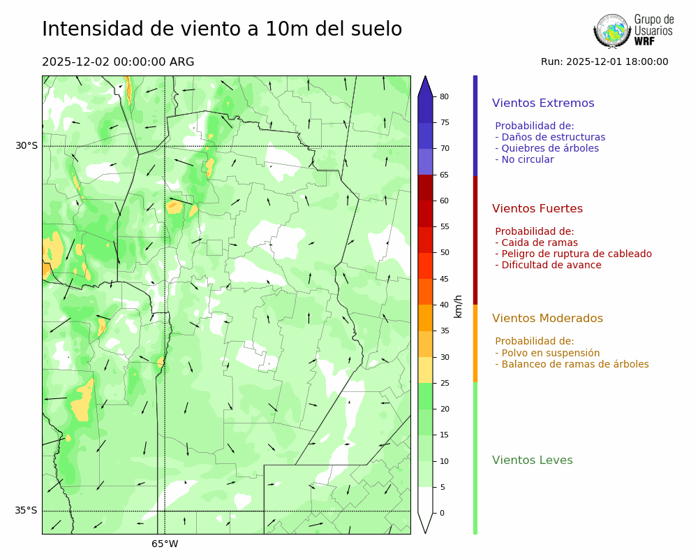 • Intensidad máxima: 13.19 km/h (02/12/2025 11hs.)