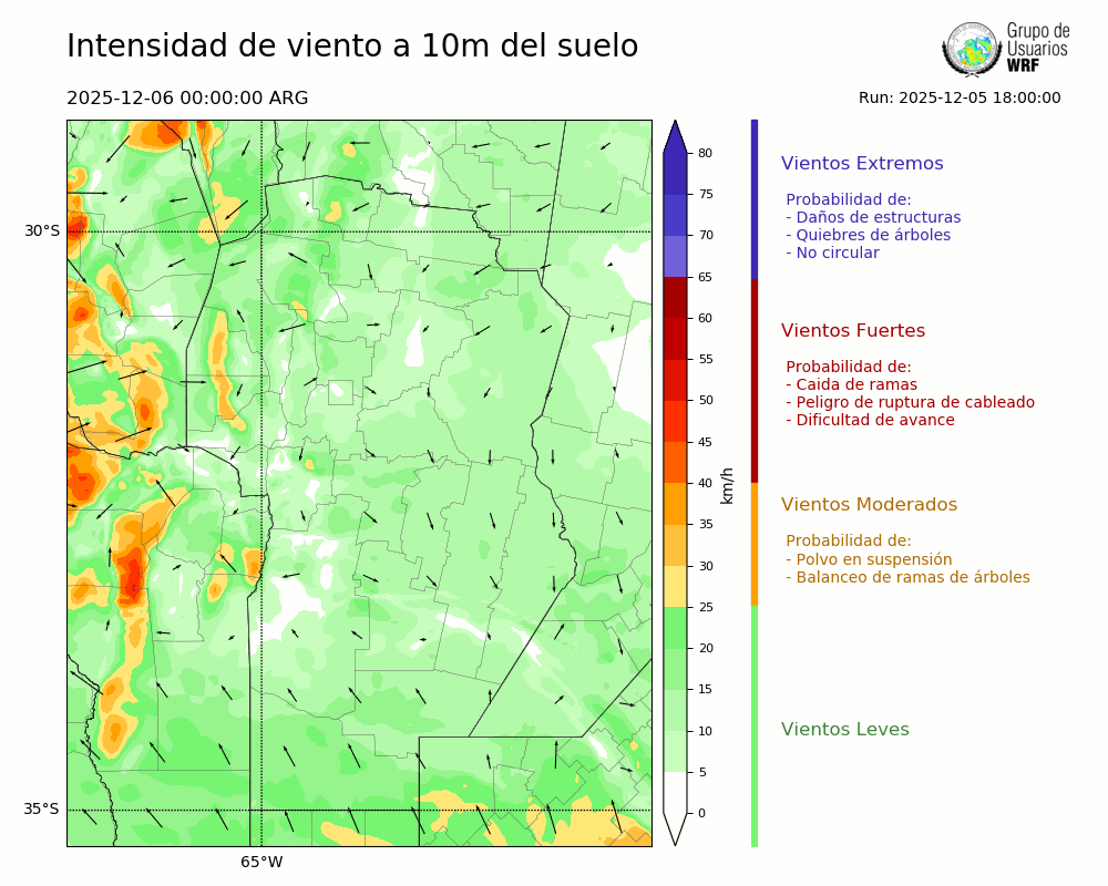• Intensidad máxima: 14.38 km/h (06/12/2025 03hs.)