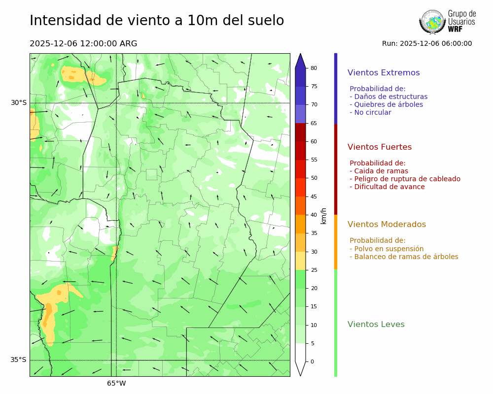 • Intensidad máxima: 7.37 km/h (06/12/2025 21hs.)