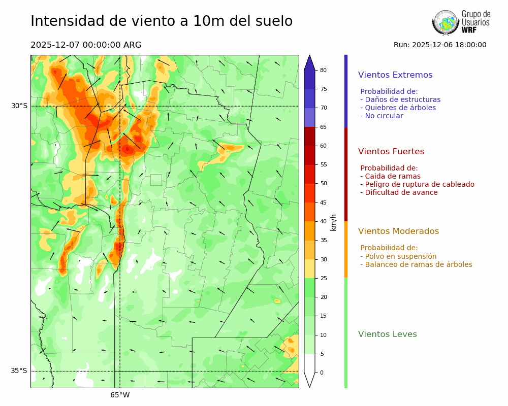 • Intensidad máxima: 22.09 km/h (07/12/2025 01hs.)
