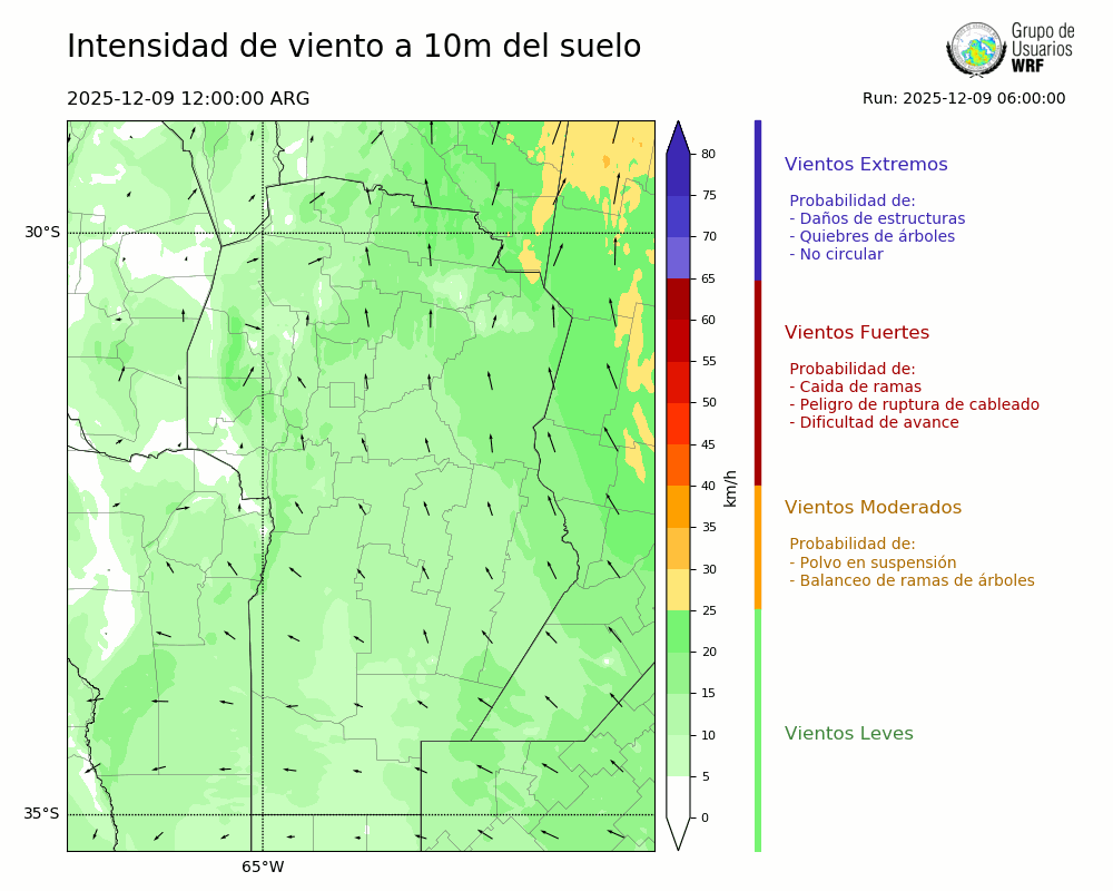 • Intensidad máxima: 15.69 km/h (09/12/2025 17hs.)