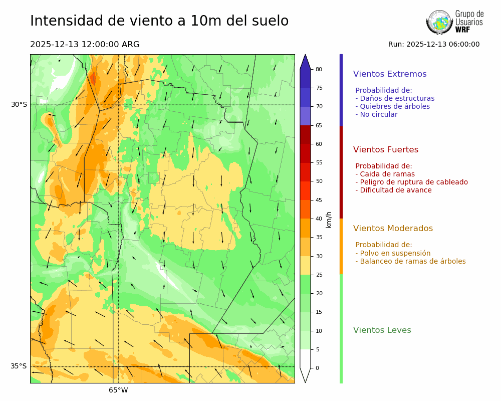 • Intensidad máxima: 20.09 km/h (13/12/2025 15hs.)