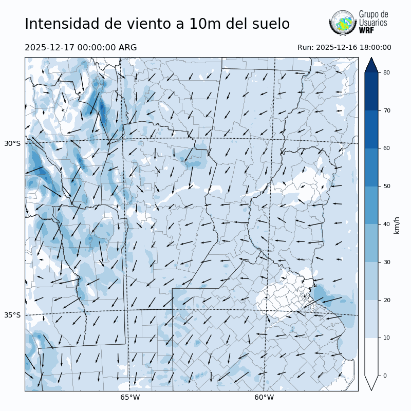 • Intensidad máxima: 17.02 km/h (17/12/2025 01hs.)