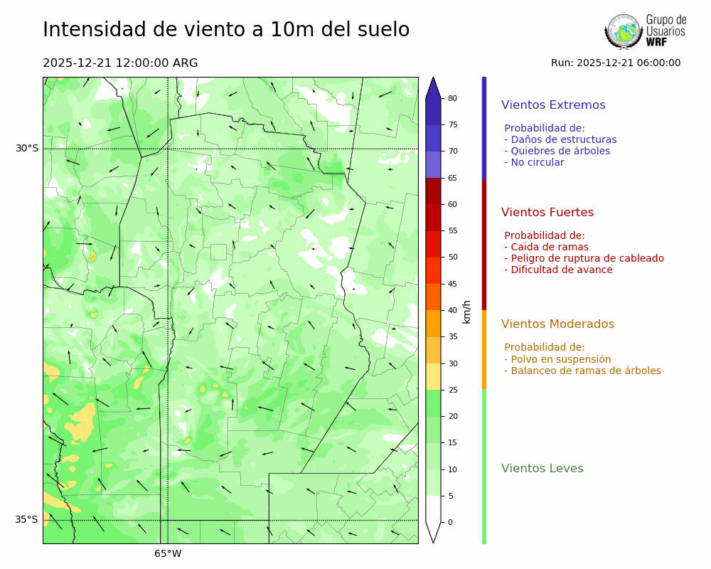 • Intensidad máxima: 14.13 km/h (21/12/2025 16hs.)