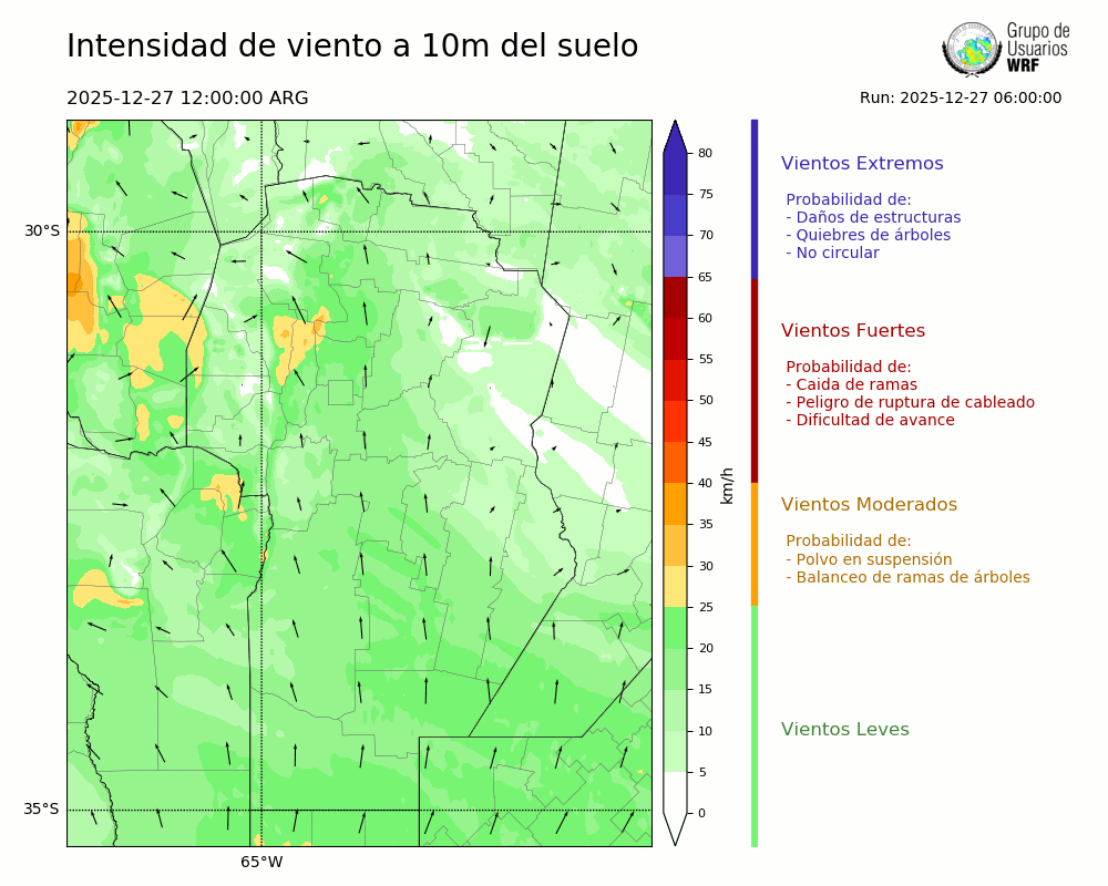 • Intensidad máxima: 13.01 km/h (28/12/2025 02hs.)