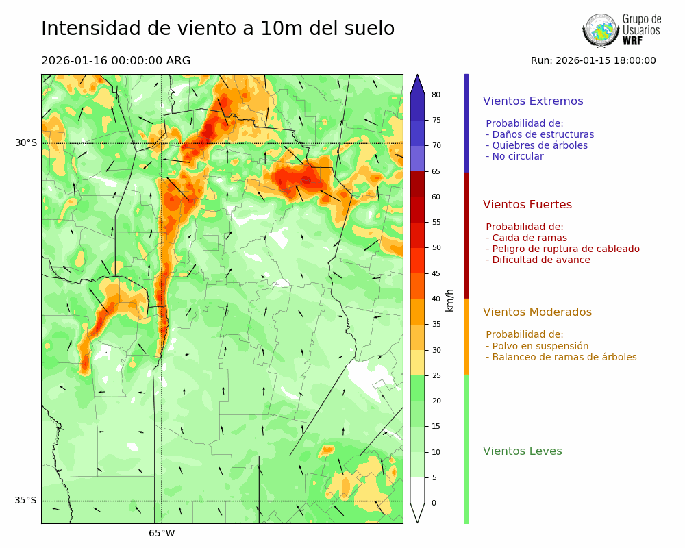 • Intensidad máxima: 22.66 km/h (16/01/2026 00hs.)