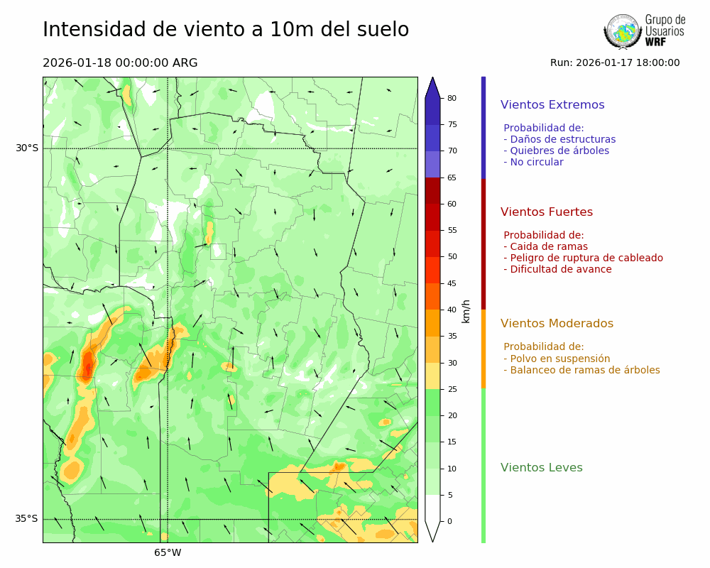 • Intensidad máxima: 18.36 km/h (18/01/2026 04hs.)